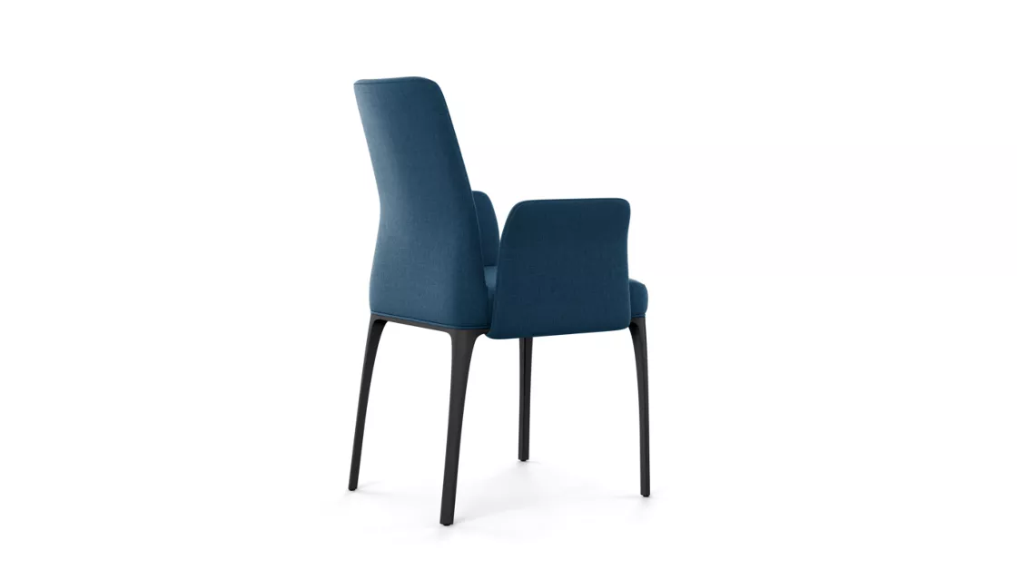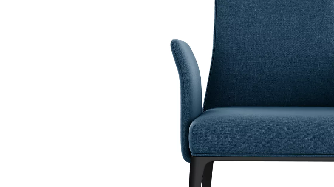 Assise, dossier et accoudoirs rembourrés mousse polyuréthane 40 kg/m3, revêtement en tissu (nombreux coloris) ou en cuir.