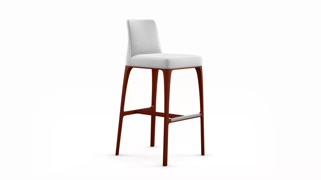 Un tabouret de bar gracieux avec sa fine structure en hêtre, et confortable grâce à son assise moelleuse et le maintien assuré par un petit dossier galbé.