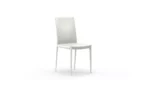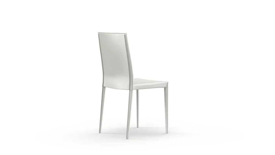 Chaise rembourrée à structure métallique recouverte de refente de cuir (plusieurs coloris disponibles). Finition liseré dossier coloris Noir. Coutures bord à bord et ton sur ton.