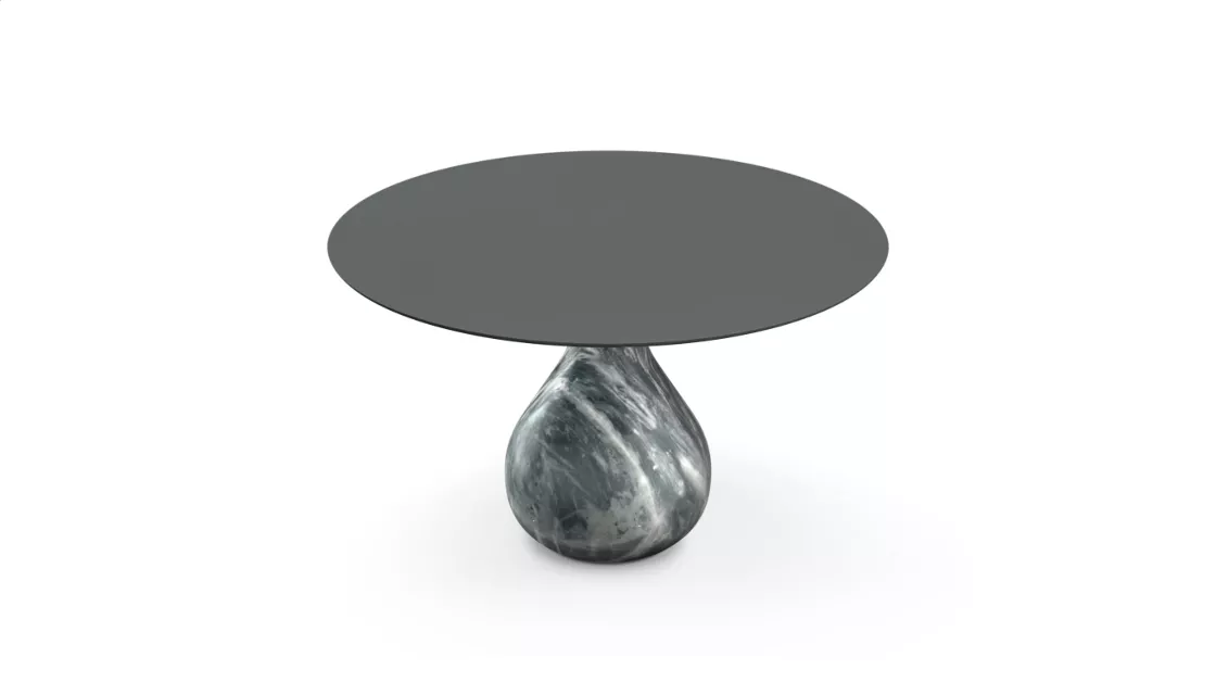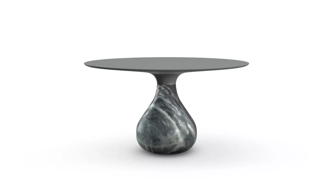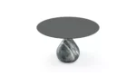 Table repas ovale avec base centrale en marbre massif finition mat ou poli-brillant et plateau en polyuréthane laqué et panneaux de fibres de densité moyenne avec placage en stratifié Fenix®