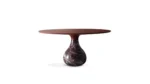 Table de repas ronde avec une base centrale en marbre Rosso Levanto massif poli brillant. Plateau en polyuréthane laqué et MDF avec placage en stratifé Fénix® coloris Rosso Jaïpur ou noir