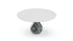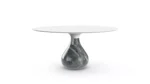 Table repas ronde avec base centrale en marbre massif finition mat ou poli-brillant et plateau en polyuréthane laqué et panneaux de fibres de densité moyenne avec placage en stratifié Fenix®