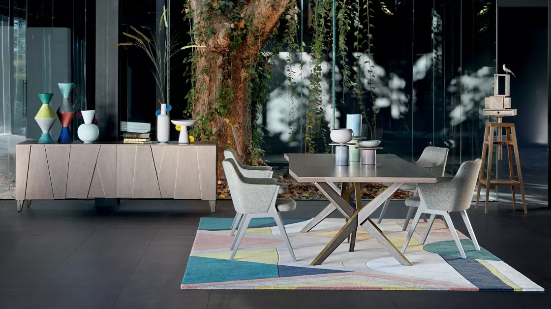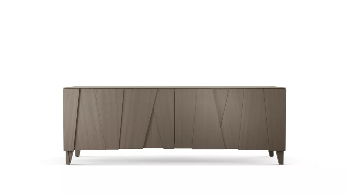 Structure multiplis plaqué chêne avec chants teinte gris foncé. Intérieur une étagère réglable en verre acidé fumé bronze épaisseur 8mm et une étagère bois amovible avec un tiroir en panneaux de fibres de moyenne densité plaqué avec coulisses touche-lâche et fond tiroir recouvert de tissu aspect cuir. Pieds chêne massif avec niveleurs.