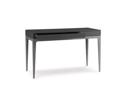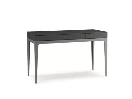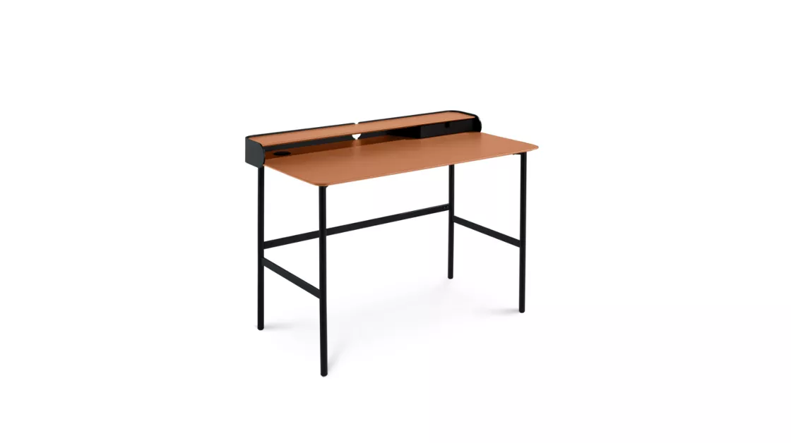 De petite taille, démontable, le bureau Scribe est bien dessiné et bien habillé en refente de cuir dans de multiples couleurs. Idéal pour télétravailler chez soi si besoin est…