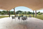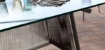 Imaginée par le designer américain Stephen Burks, Traveler est une collection complète pour lire, déjeuner et paresser à l’extérieur. Elle se distingue par ses fines structures tubulaires en aluminium laqué, enroulées de fils de couleurs, et se décline en deux harmonies : une pétillante (corail, rouge et jaune) et une paisible (gris, blanc et bleu cobalt).