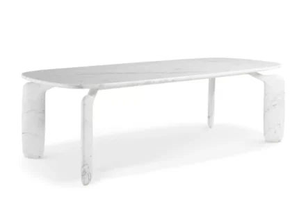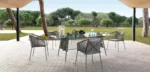 Imaginée par le designer américain Stephen Burks, Traveler est une collection complète pour lire, déjeuner et paresser à l’extérieur. Elle se distingue par ses fines structures tubulaires en aluminium laqué, enroulées de fils de couleurs. Elle se décline en trois harmonies : une pétillante (corail, rouge et jaune), une claire (gris, blanc et bleu cobalt), et une naturelle aspect corde, gris souris, beige et brique.