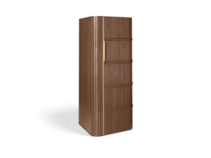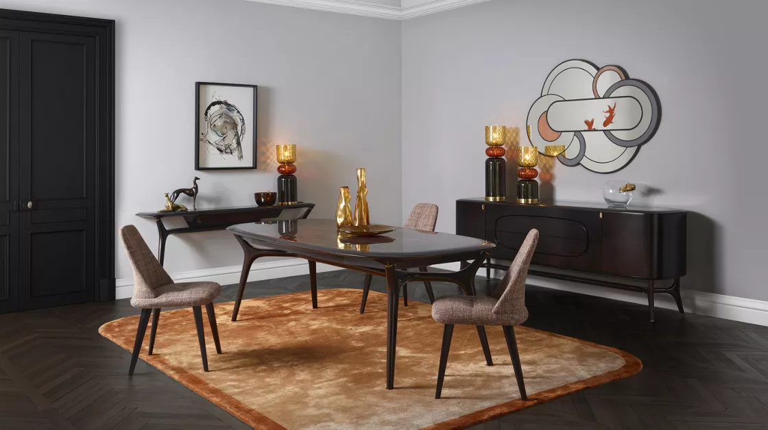 Structures de bois massifs fuselées, lignes aérodynamiques, la collection Winch s’inspire des beaux voiliers des années 50. Chaque détail montre un travail d’ébénisterie de haut niveau.
